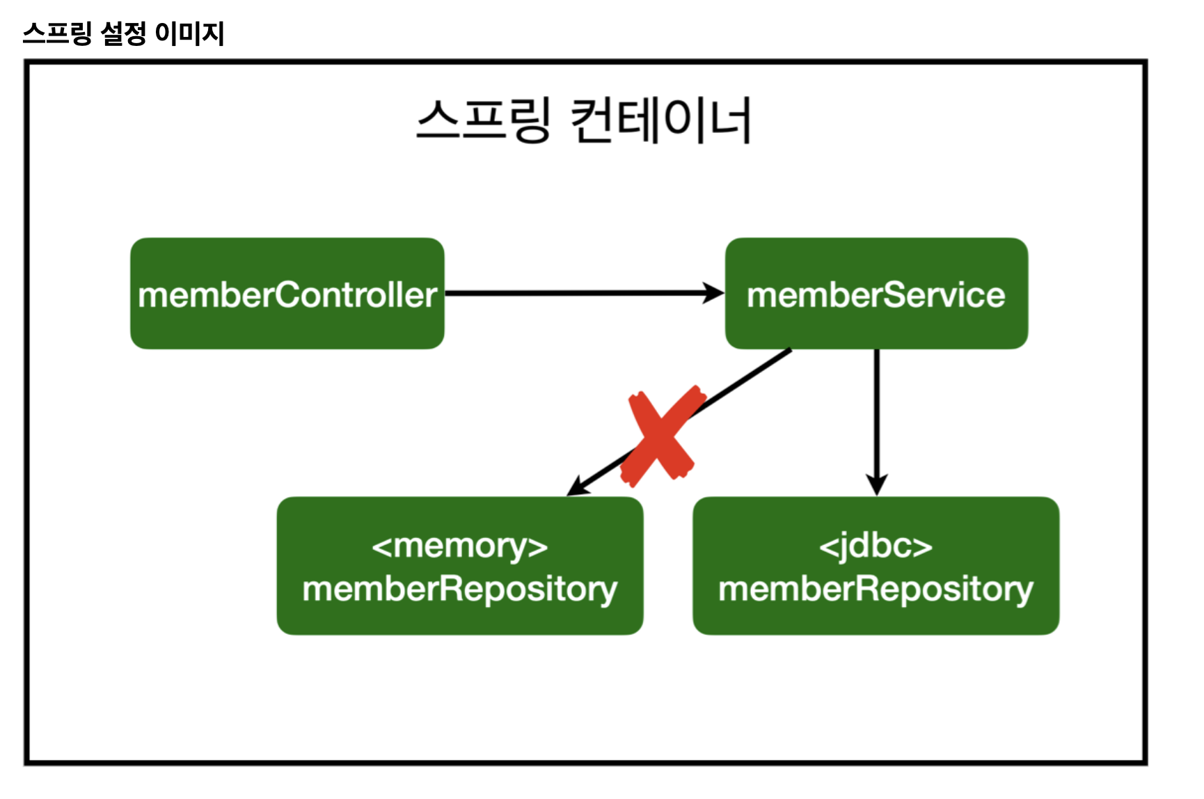 스프링의 DI (Dependencies Injection)을 사용하면 기존 코드를 전혀 손대지 않고, 설정만으로 구현 클래스를 변경할 수 있다.