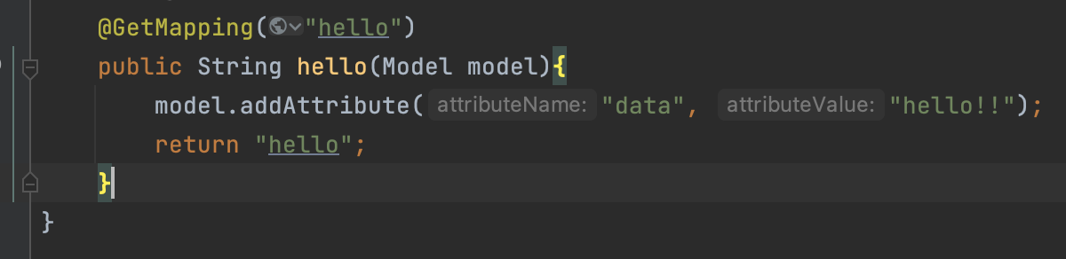 public String hello(Model model)
