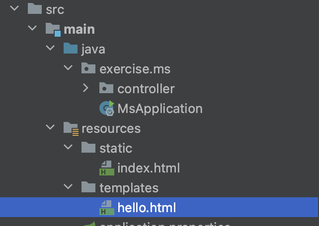 src -> main -> resources -> templates 에서 hello.html 파일을 만듭니다.