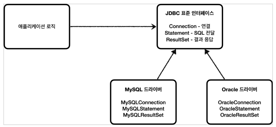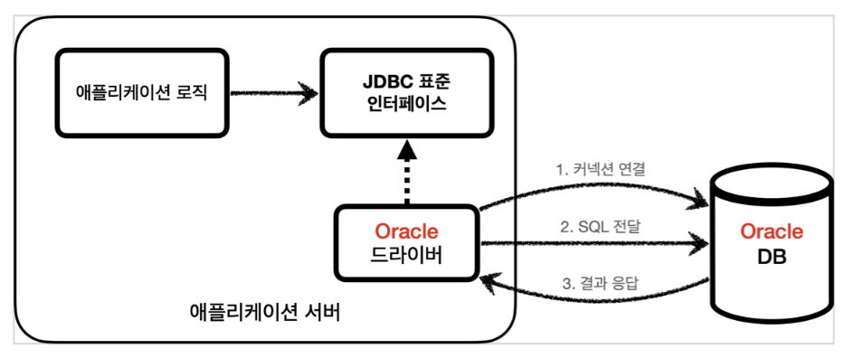문제는 각각의 데이터베이스마다 커넥션을 연결하는 방법, SQL을 전달하는 방법, 그리고 결과를 응답 받는 방법이 모두 다르다는 점이다.
