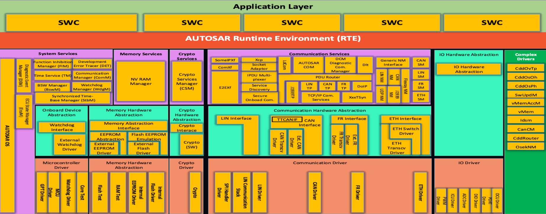 SWC, SW 컴포넌트(Software Component)의 집합이다. SWC란, 독립된 실행단위이며 기능에 따라 어플리케이션, 액츄에이터, 센서로 구별된다.