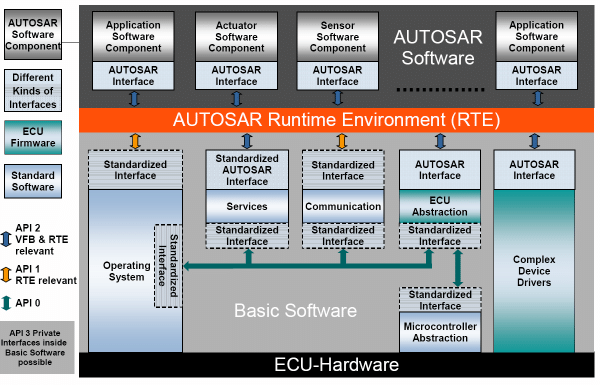 OS는 직접 하드웨어를 제어해야 효율적이기 때문에 Service Layer가 MCAL Layer까지 내려와 있다. 참고로 AUTOSAR OS는 OSEK/VDX 운영체제에서 특히 시스템 보호 기능, 실시간성 높인 스케쥴링 기능, 타이머 처리 기능을 확장한 차량 전장용 운영체제 표준이다.