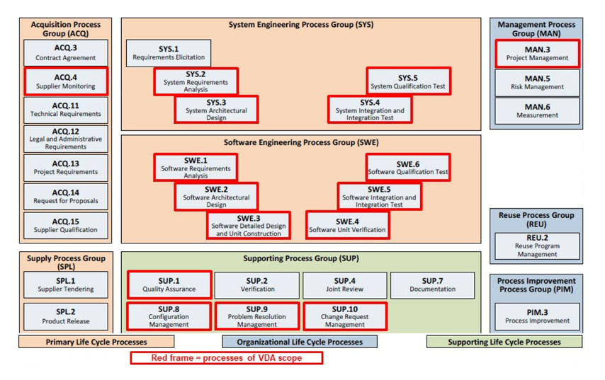 이러한 BP와 WP의 집합인 GP(Generic Pratice), 개발 프로세스 자원인 GR(Generic Resource)에 대한 A-SPICE 심사를 통해 Capability Level 산정