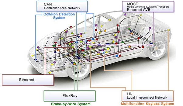 - 차량용 통신 : 차량 내 수십 개의 제어기들이 서로 안정적으로 정보를 공유하고 전달하기 위해 사용되는 유선 통식 방식
