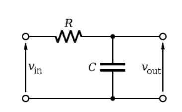 아날로그 LPF의 회로도는 아래와 같다. 아날로그 LPF는 지금처럼 디지털 기술이 발전하기 전, 물리적인 회로를 만들어서 신호의 잡음을 줄이기 위해 사용되었으나 현대처럼 디지털 기술이 발전한 시대에서는 아날로그보다 디지털 LPF를 사용하는 것이 편하다.